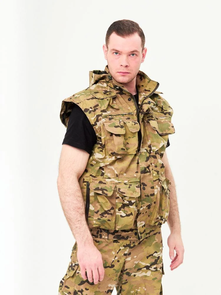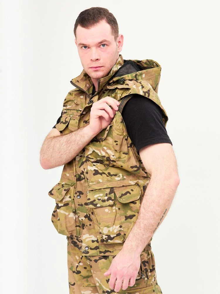 Костюм для рыбалки мужской летний (куртка-жилет+брюки-шорты) "Хищник" кмф "Мультикам"